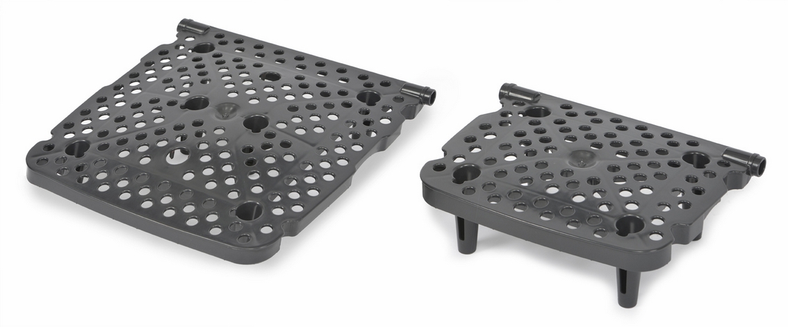 • Features: perforated housing/ventilation meshes, lid insert, reinforced bottom, grate for liquid drainage
