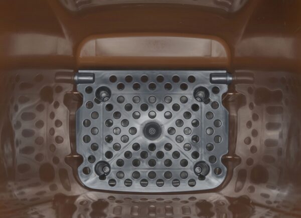 The biodegradable waste container includes a foldable bio-mesh (grate) placed inside to enable efficient drainage of liquids to the bottom. The ventilation grid allows continuous evaporation so liquids do not accumulate. With the grate installed, the container still offers over 90% of its volume. The grate is removable and foldable for easy emptying and thorough cleaning, improving compost quality while remaining convenient to use.