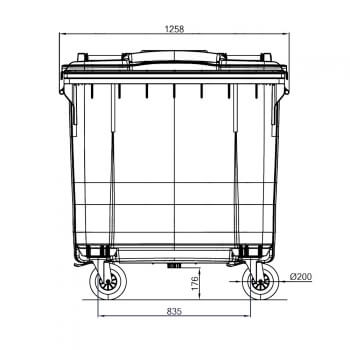 The 770 L brown biodegradable waste container is made from high-quality PE‑HD, resistant to UV radiation, acids and other external factors. It is suitable for indoor and outdoor use (e.g., shelters, communal enclosures). The structure is reinforced at edges and high-load areas to prevent mechanical damage. Side ribs and a DIN-compliant comb strip increase stability and functionality on any surface.