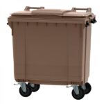 The 770 L container shown is brown for bio-waste. Other available colors for segregation: graphite (mixed waste), blue (paper), yellow (metals and plastics), green (glass).