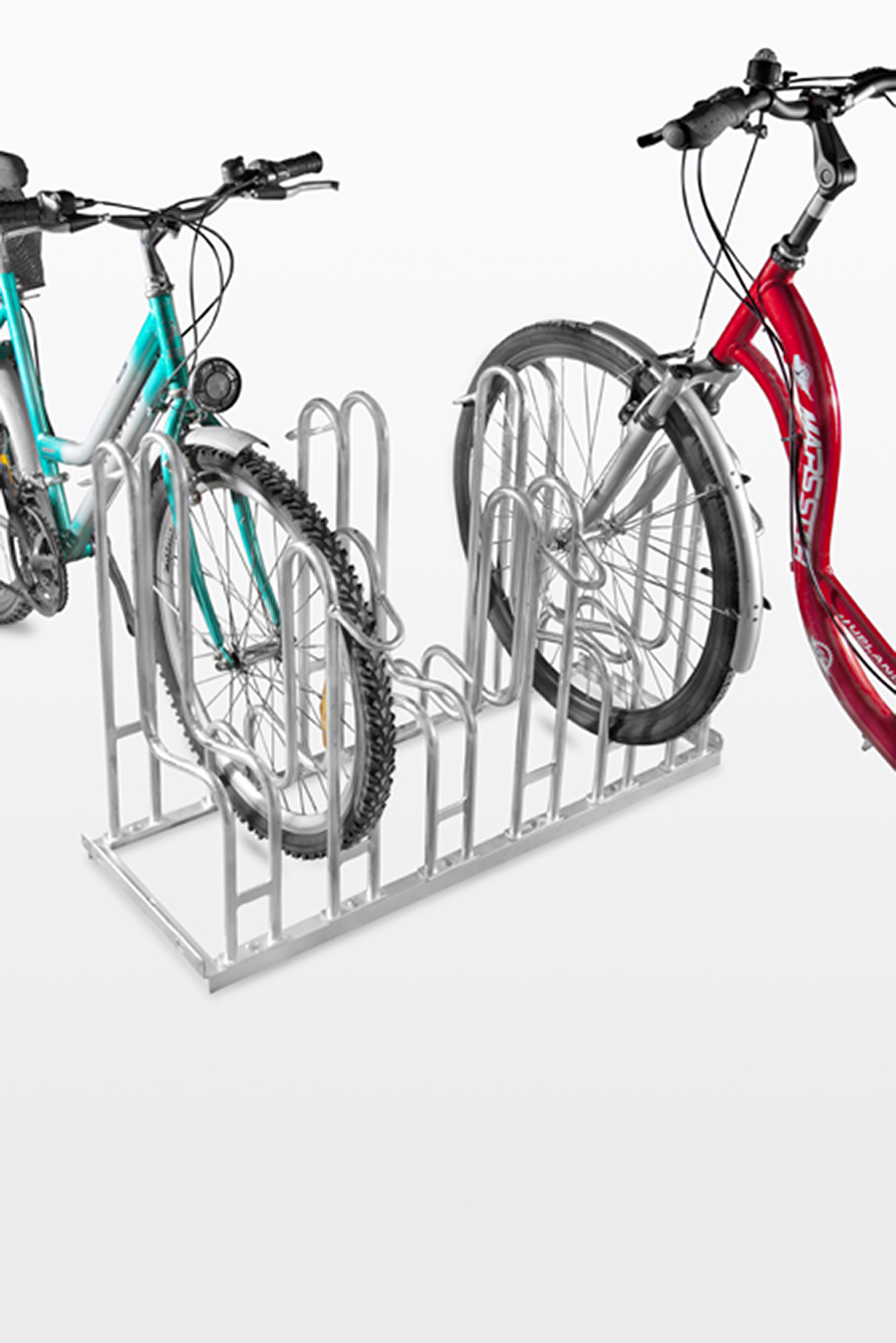 The bolted construction enables quick assembly and easy relocation. The rack can be used freestanding or anchored to the ground for increased stability. It is ideal for residential estates, schools and universities, recreational areas, office buildings, shops, and service premises.