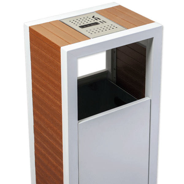 - Integrated steel ashtray in the lid — safe extinguishing of cigarette butts to reduce littering.