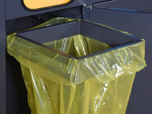 Interior furnishings must be attractive, functional and easy to keep clean. The modular recycling bin has lids that facilitate selective waste collection and help protect against unpleasant odours. It is equipped with practical frames for 120 L bags so bags stay in place even when fully loaded, preventing uncontrolled spilling of waste. The office trash can therefore remains hygienic in use and easy to empty and clean.