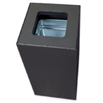 The bin is powder-coated black (RAL 9005). Segregation stickers in the agreed fraction colors are included for self-application—customers can choose stickers for: