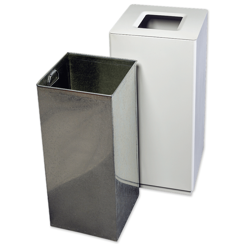 • Internal galvanized steel liners are removable for easy emptying via lift-up lids.