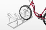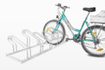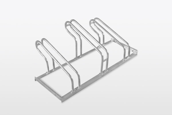 The rack is available in multiple versions (2–10 spaces), making it suitable for small installations as well as large bicycle parking zones.