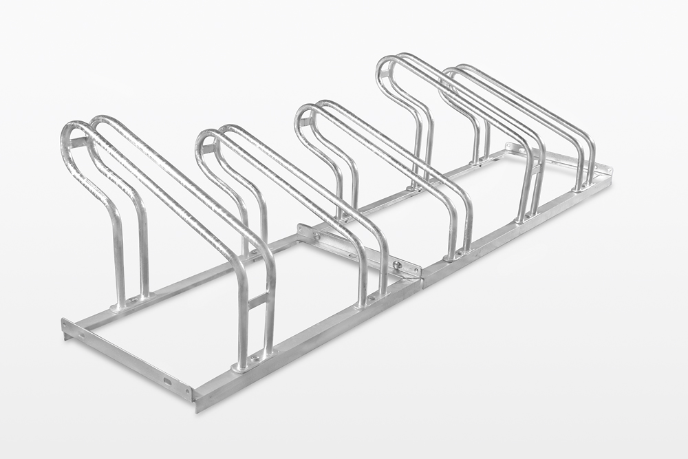The single-sided layout allows attractive placement next to a wall, fence or along a sidewalk. Heavy steel profiles provide stability and properly shaped holders allow easy and safe parking of bicycles. The ability to lock the bike to the frame increases security and helps protect against theft.