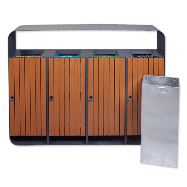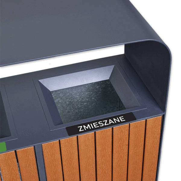 The 4-chamber recycling bin Bali 4 x 75 L is designed for public spaces and green areas where aesthetics and functionality must go hand in hand. Ideal for parks, squares, walking and cycling paths, recreational areas, playgrounds, sports facilities, shopping centers, parking lots, public transport stops and gas stations. Its universal construction and durability suit both urban and rural environments, helping maintain cleanliness and promote waste separation.