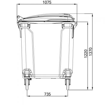 - Load capacity: Nominal load up to 510 kg (highest available for 1100 L plastic municipal containers).