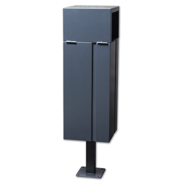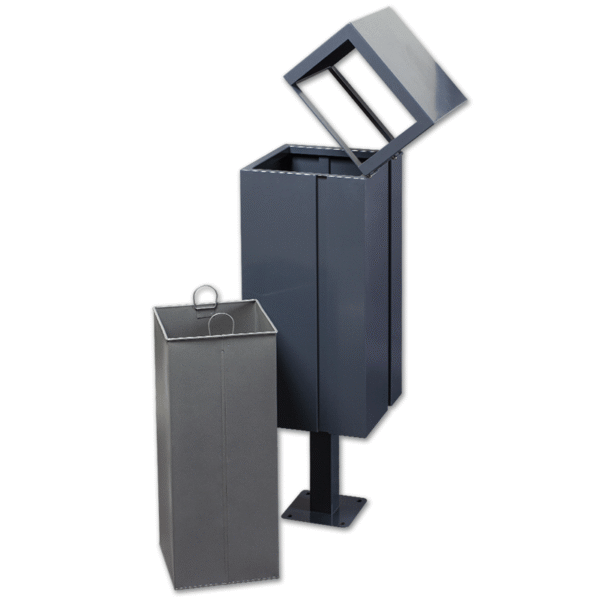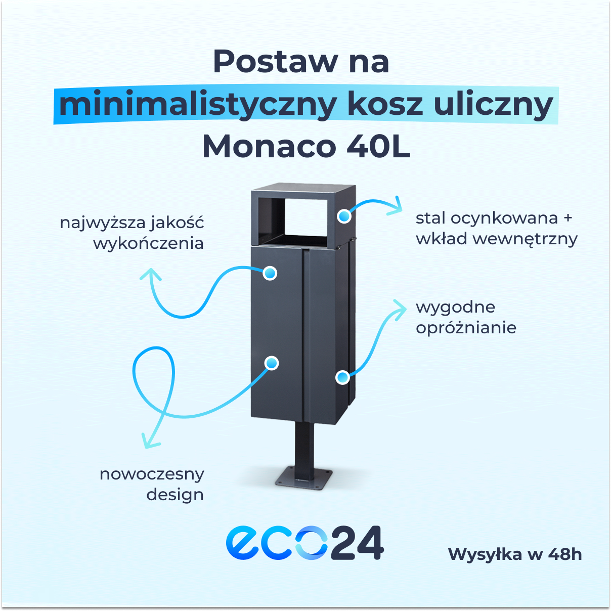 Bin Street on a post Monaco 40 L is a combination of elegance and high quality, ideal for urban public spaces and small-scale urban architecture. It is perfect for locations with high foot traffic such as stops, transport hubs, stations, parks, squares, office buildings, public offices, and residential estates.