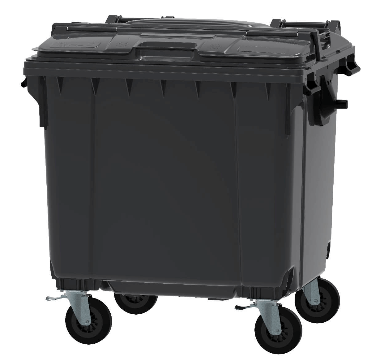 Material: Injection‑molded HD‑PE (high‑density polyethylene) resistant to UV and weather. Chemical‑resistant — suitable for various municipal and industrial wastes.